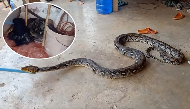 Viral Video Penemuan Ular Piton Raksasa Sembunyi Di Plafon Kamar Mandi Rumah Artis Dream Co Id