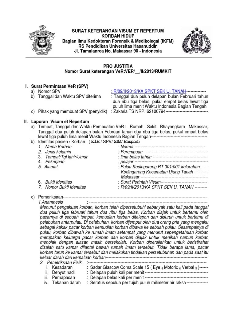 Contoh Surat Visum Et Repertum Luka Akibat Kekerasan Nusagates
