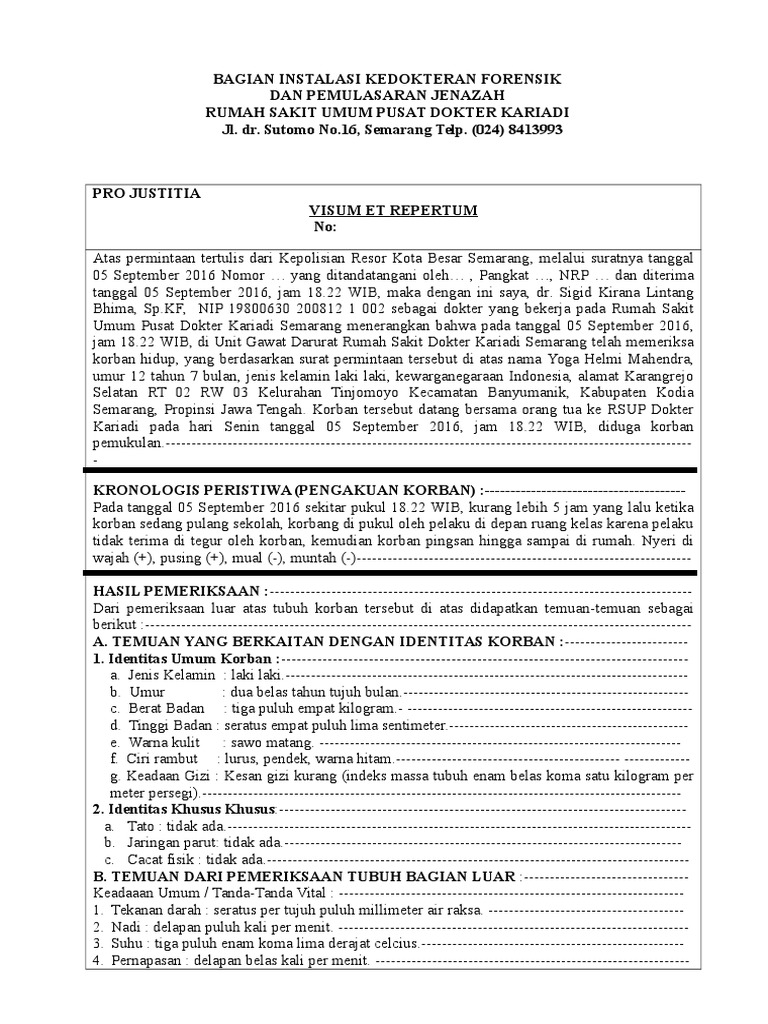 Contoh Visum Et Repertum Kasus Luka Tusuk Medisupdate Com