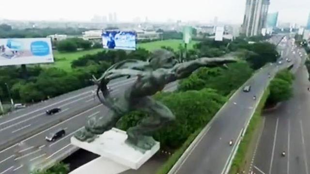 Terungkap Tampang Patung Pancoran Berkat Drone