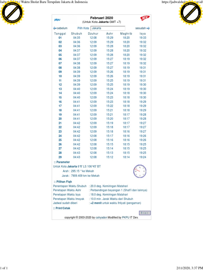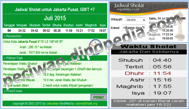 Perbandingan Tiga Widget Jadwal Sholat Peciwan