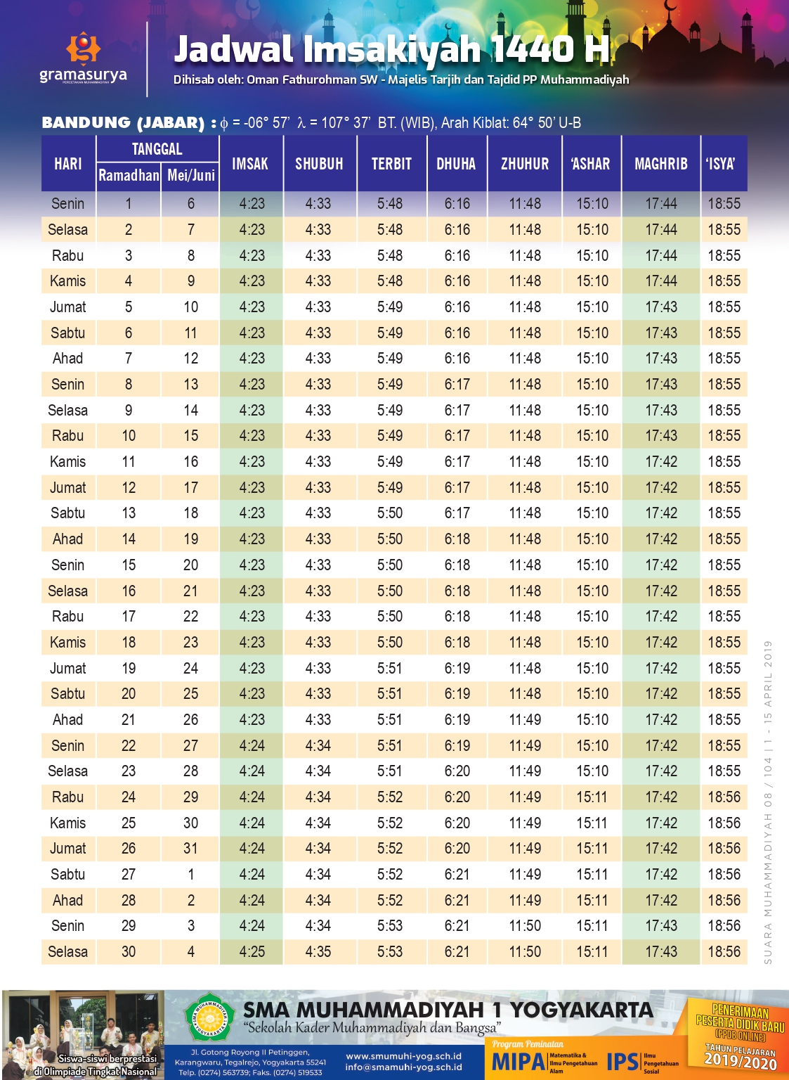 Jadwal Puasa Imsakiyah Ramadhan 2020 Dan Sholat Wilayah Jawa Barat