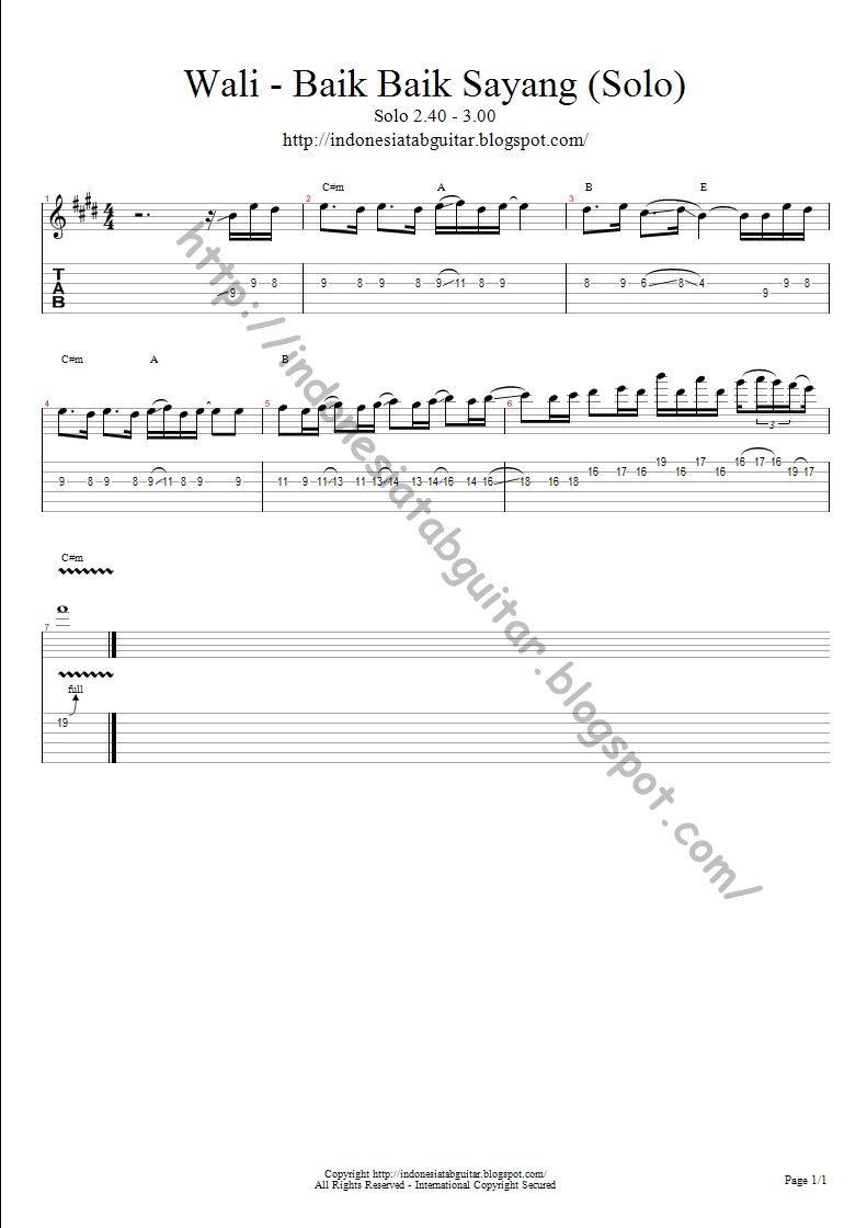 Tab Gitar Tab Guitar Wali Baik Baik Sayang Solo