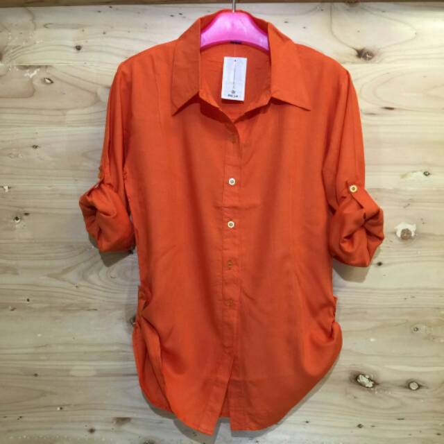 Kemeja Polos Warna Merah Bata Fesyen Wanita Pakaian Wanita Atasan Di Carousell