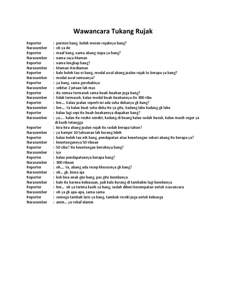 Contoh Wawancara Bahasa Jawa Dengan Pedagang Bagikan Contoh