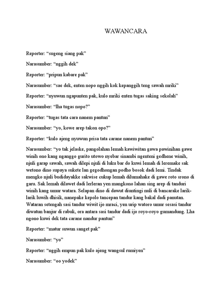 Detail Contoh Wawancara Bahasa Jawa Dengan Guru Contoh Resource