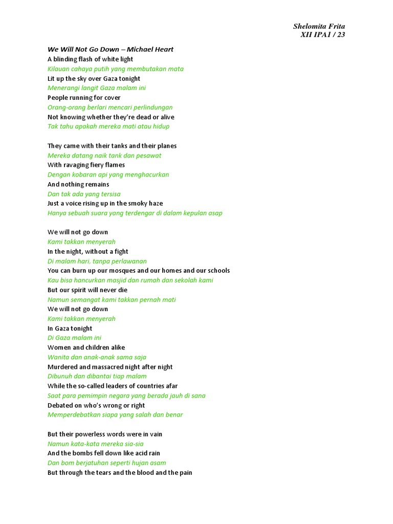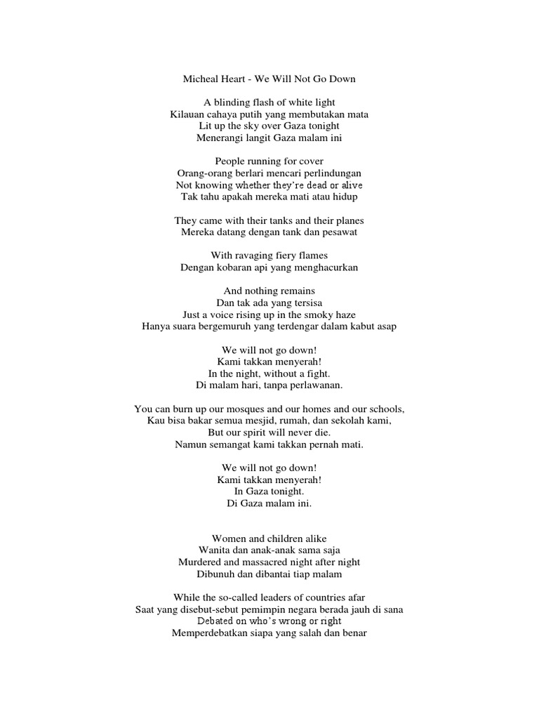 Terjemahan We Will Not Go Down Lyrics By Michael Hart Lentera Jiwaku Kehidupanku