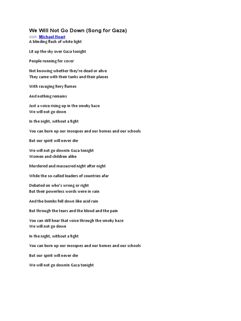 Chords For We Will Not Go Down Gaza Michael Heart