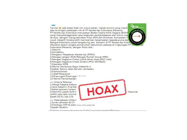 Cek Fakta Hoaks Pt Kai Buka Lowongan Kerja Sebagai Pamsuska Merdeka Com