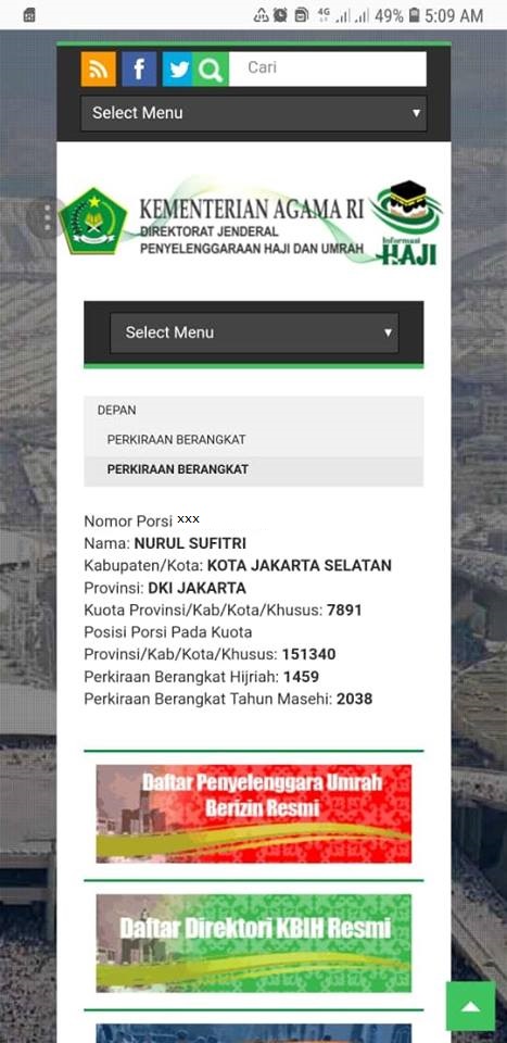 Cara Cek Nomor Porsi Haji Via Aplikasi Web Kemenag Ri