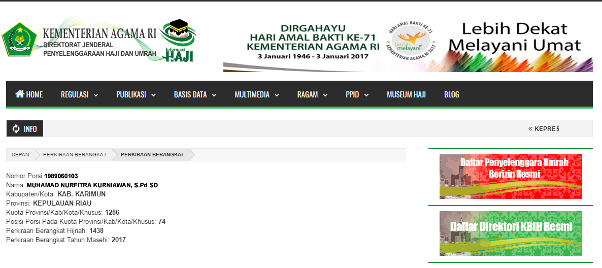 Cara Mudah Mengecek Keberangkatan Sesuai Nomor Porsi Haji Kua Kecamatan Karimun