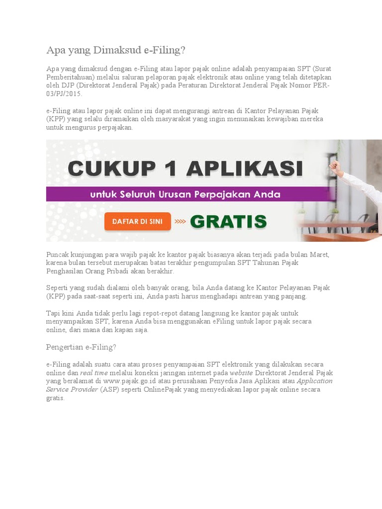 Mau Lapor Spt Online Pakai Efilling Pajak Aja Sepulsa