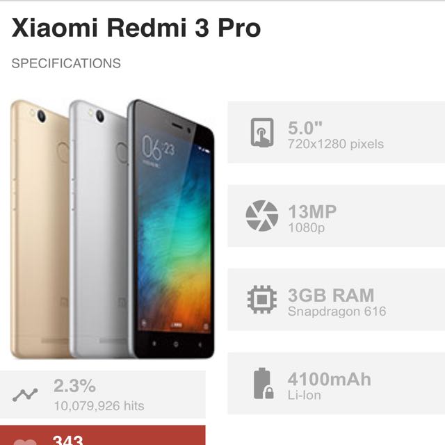 Xiaomi Redmi 3 Pro Data Specification Profile Page Gizmochina