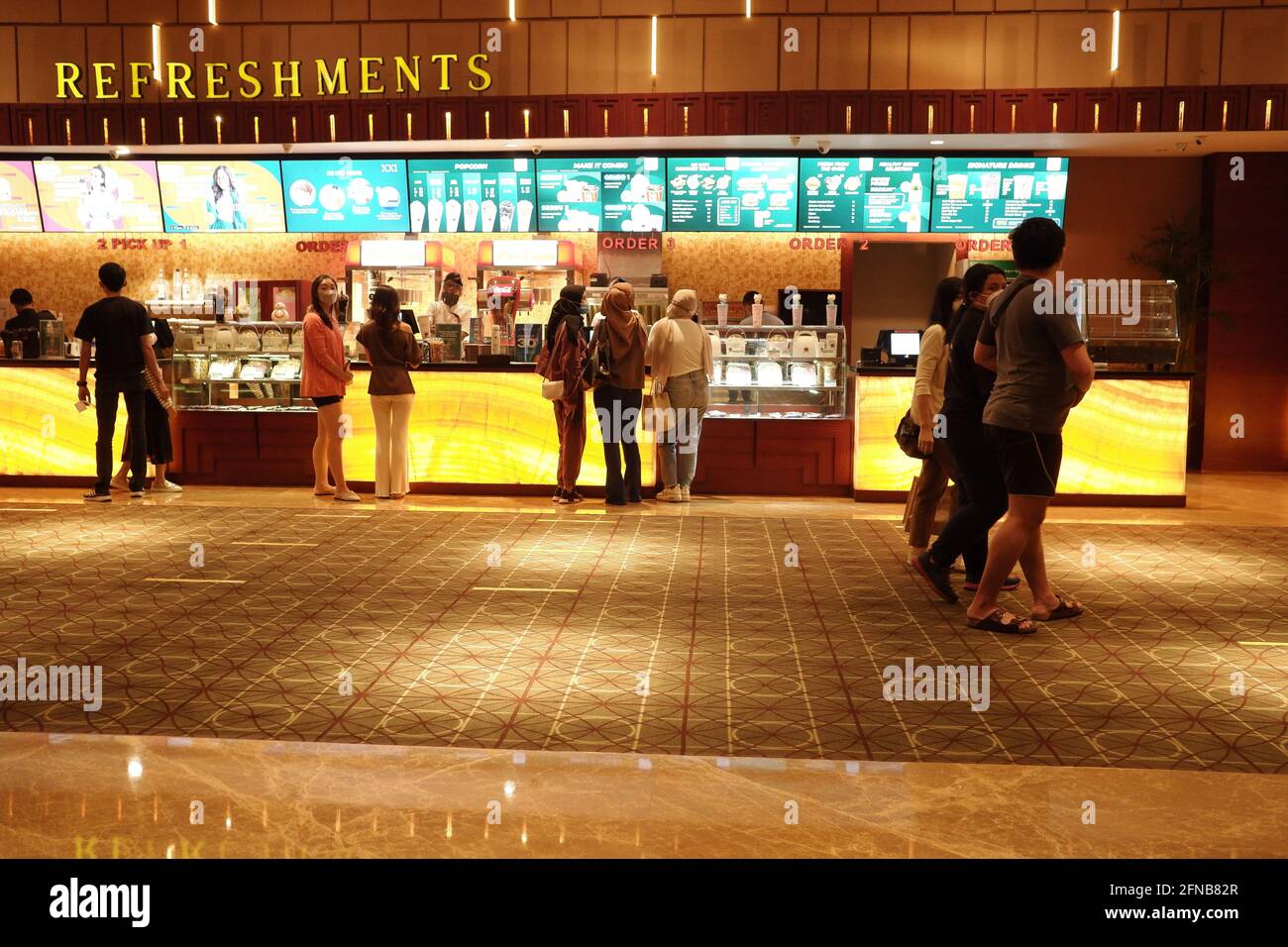 Jakarta Indonesia 13th Apr 2021 Visitors Buy Snacks Before Watching The Xxi Cinema Kuningan Area Jakarta On The Second Day Of The 2021 Eid Celebration Holiday On Friday May 14 2021 The