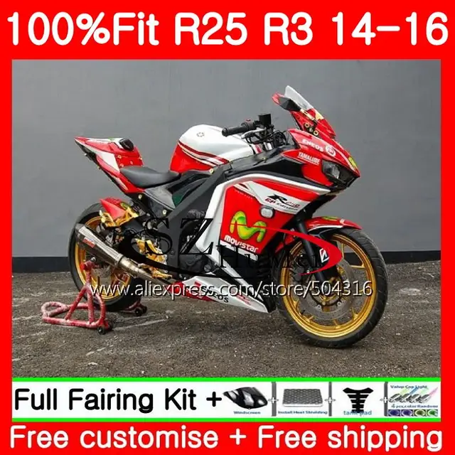 Injection Movistar Red For Yamaha Yzf R3 Yzf R3 Yzf R25 R25 14 15 16 76hc 3 R 3 Yzfr3 Yzfr25 R25 R3 2014 2015 2016 Fairings Kit Combinations Aliexpress