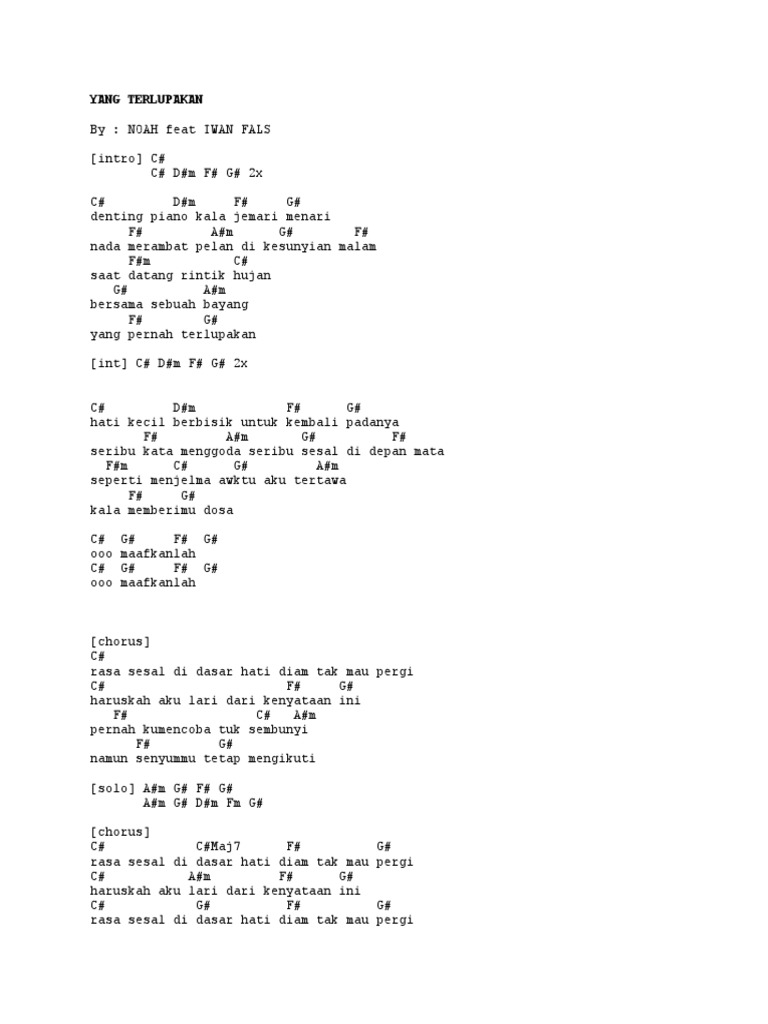 Chord Lirik Iwan Fals Feat Noah Yang Terlupakan Chordgank