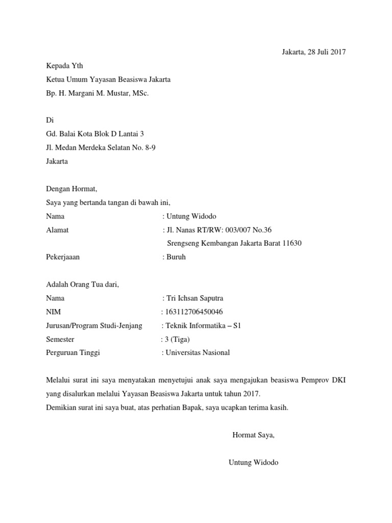 Contoh Surat Lamaran Beasiswa Ybj Pdfcoffee Com
