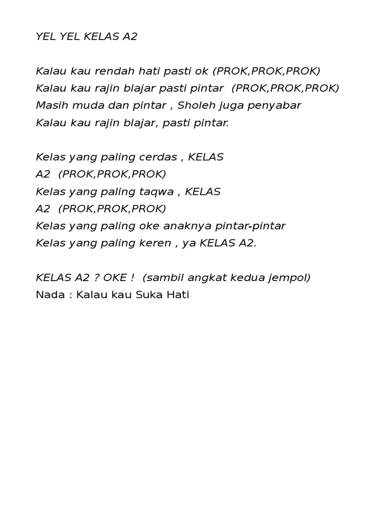 Yel Yel Kelas A2 Pdf