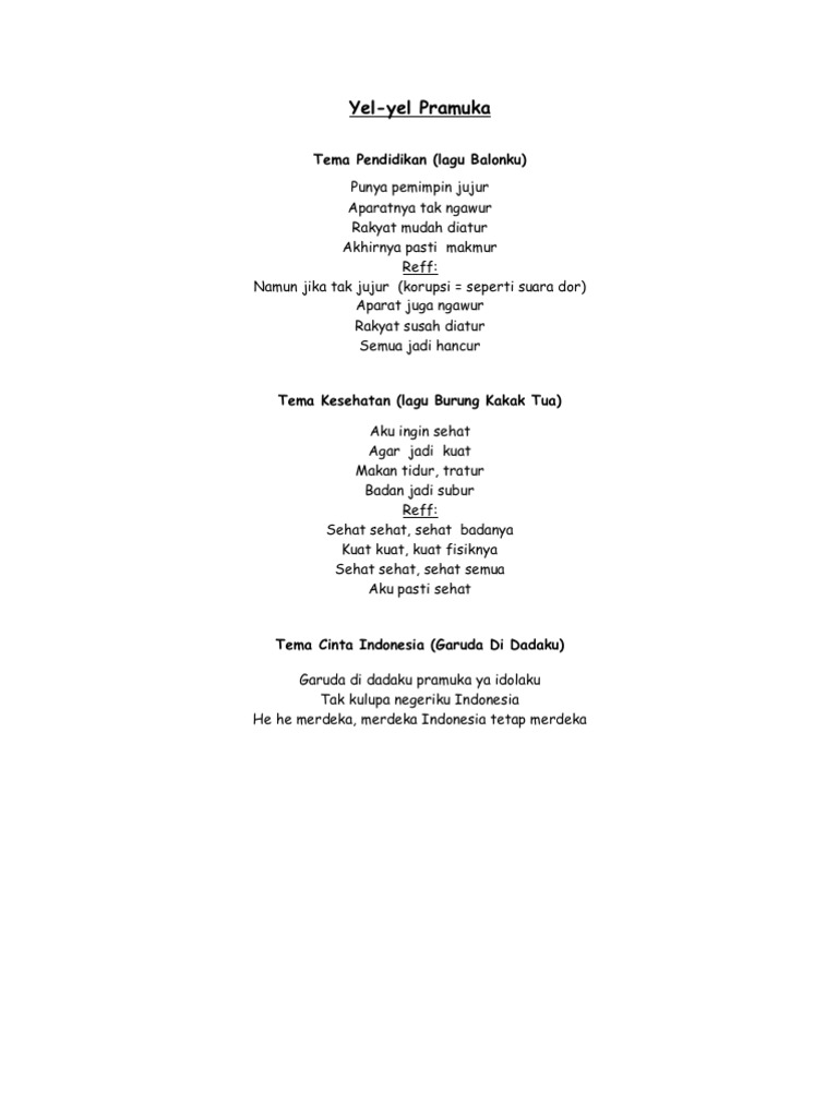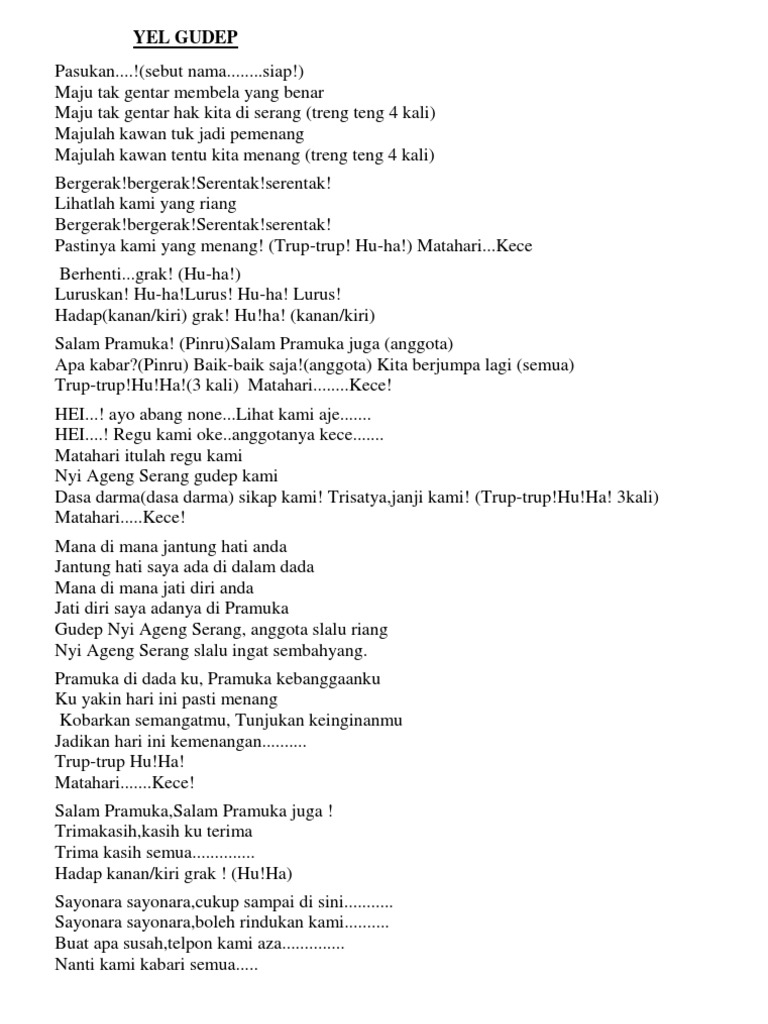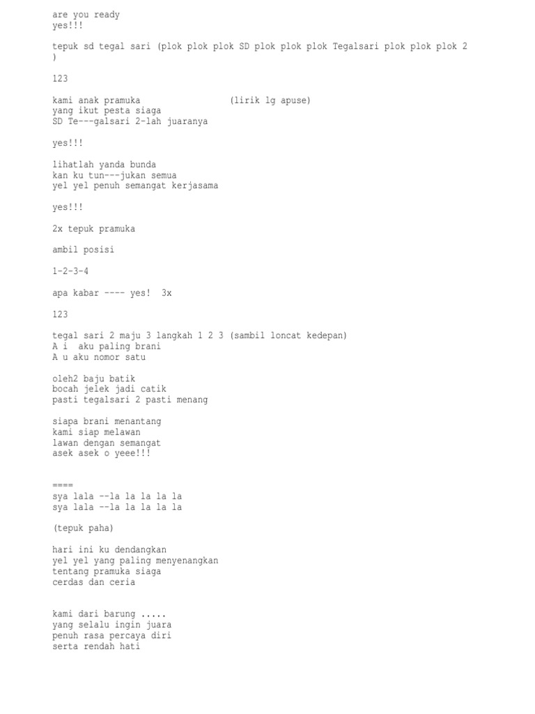 Teks Lagu Lirik Yel Yel Regu Teratai Berbagai Teks Penting