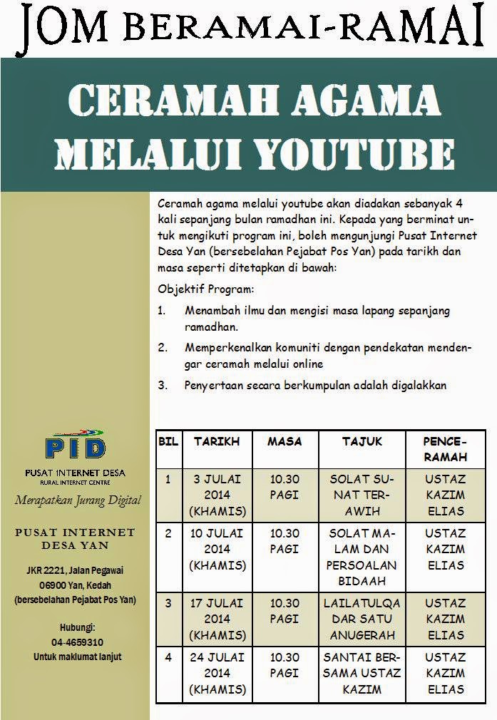 Ceramah Agama Melalui Youtube Pusat Internet Desa Yan