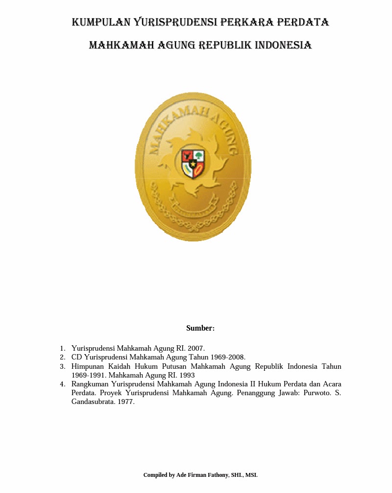 Kompilasi Kaidah Hukum Yurisprudensi Pilihan Mahkamah Agung Ri Pbh Pphki Albert Aries Partners