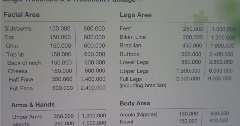 Zap Hair Removal Pricelist Http Zap Co Id Page Price List 12